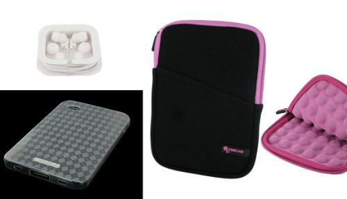 rooCASE 3n1 Super Bubble Neoprene Sleeve Case (Black / Pink) / TPU Flex Skin Case (Plaid Clear) / Earbud for Samsung Galaxy Tab Tablet P1000 for US Cellular SCH-I800 Feature | Sale - Review & Buy at Cheap Price